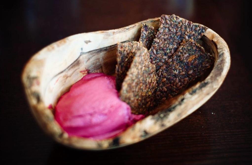 I got my inspiration for this vibrant pink beetroot and feta cheese dip, whilst I was sat on beach having brunch in Ibiza at a very nice hotel.